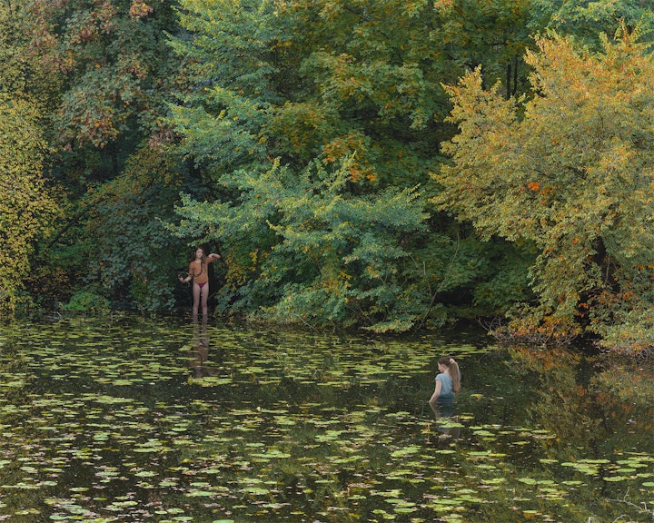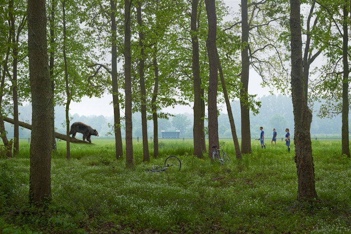 The decor in Pypers’ sculptures is a place where nature and people interact: where figures are in the woods, surrounded by water, or accompanied by an animal. The relationship between man and nature plays a major role in this work. It is surprising, but these forests, waters, animals, and the cinematic image in which they appear in reality show a scale model carefully built by the artist, which he provides with digital post-processing.