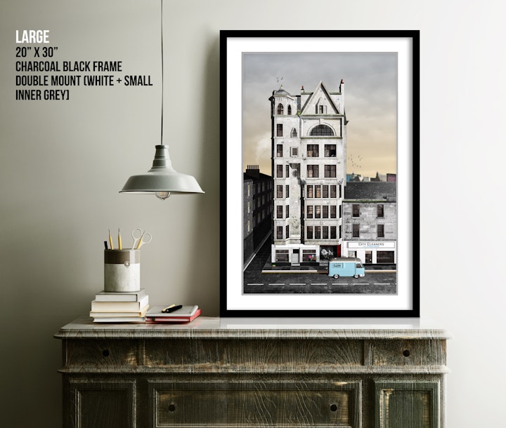 All artwork is made to order so multiple options for paper including fine art Hannemule paper, sizes, mount colours, and frame moulding are available. See the printing and framing page for more details.