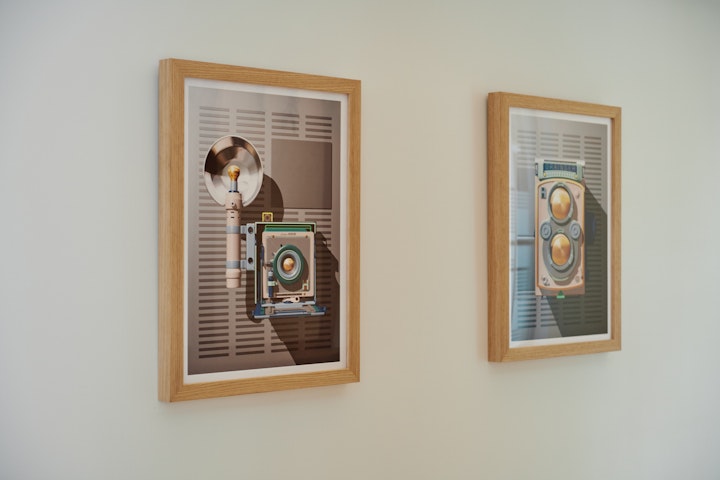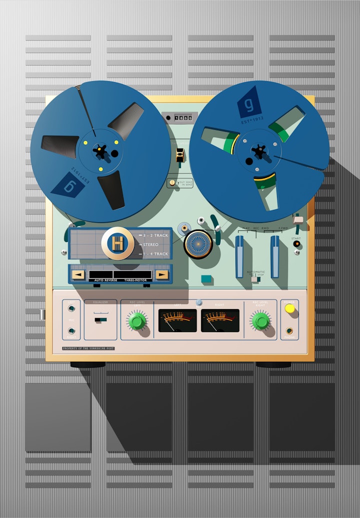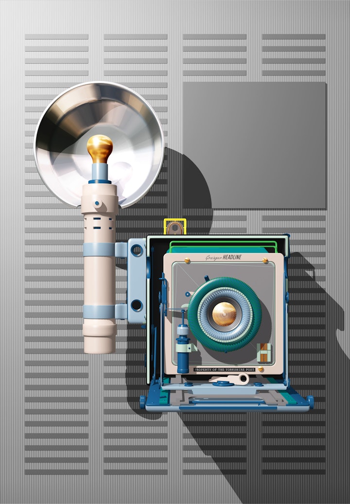 The series is an original and contemporary collection of striking digital fine art pieces that depict antique/vintage equipment typically used by a reporter. The full series includes an antique typewriter, tape cassette recorder, reel to reel recorder, vintage camera, press camera, and a pair of retro phones.